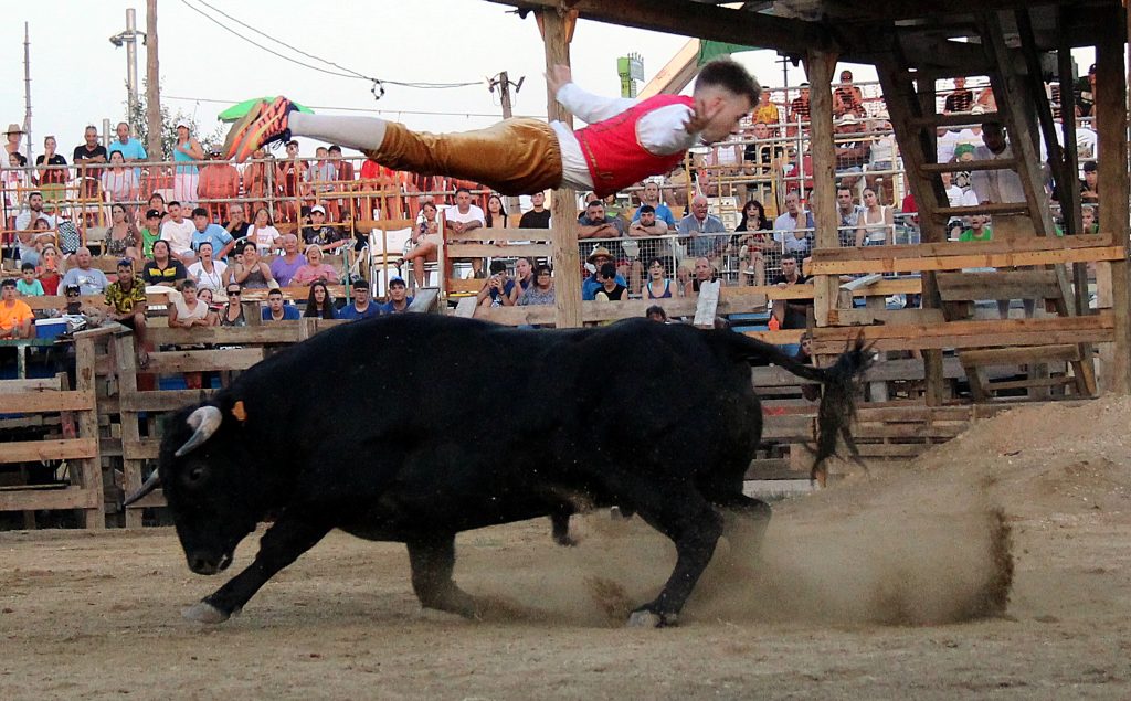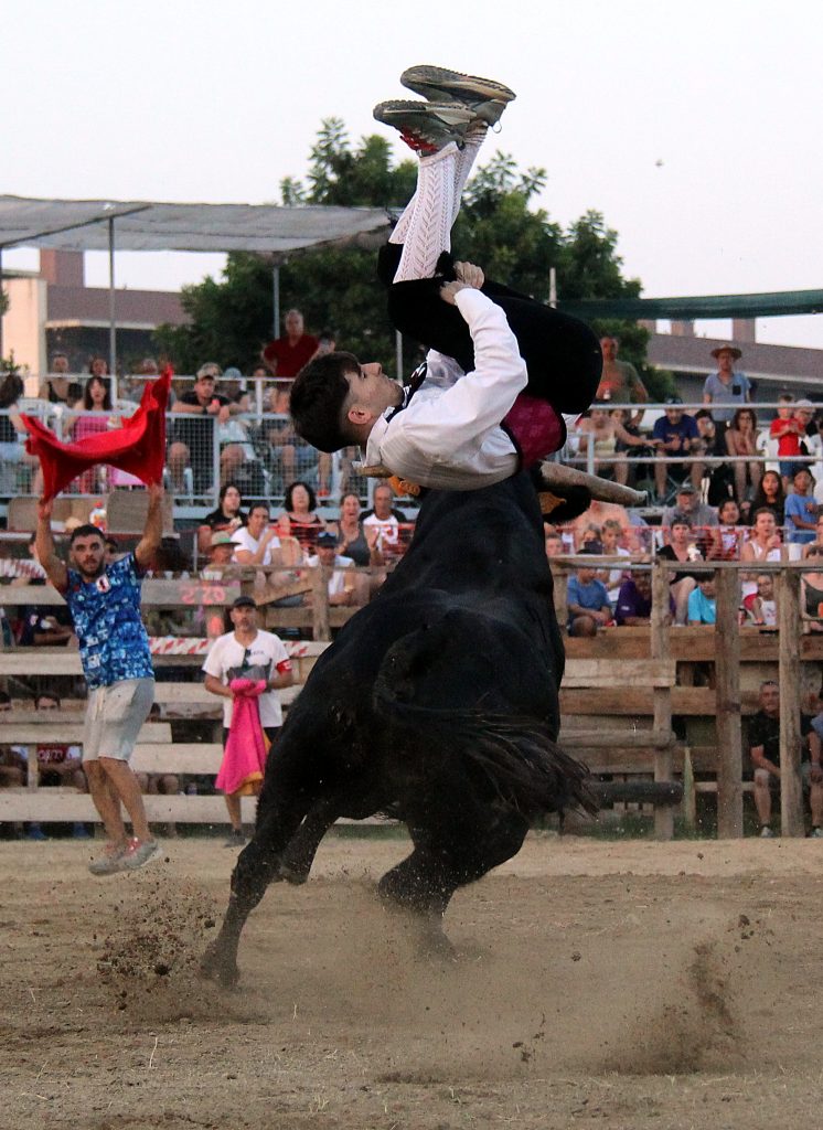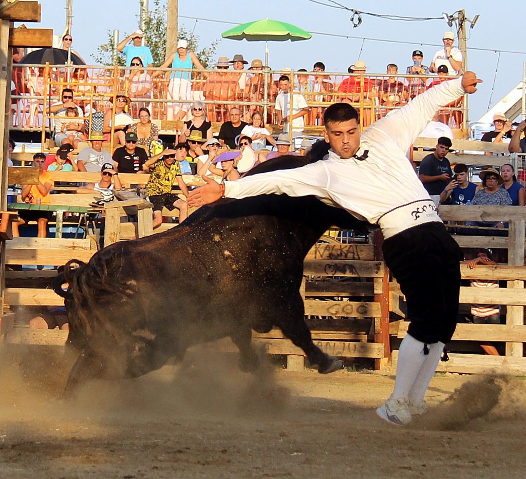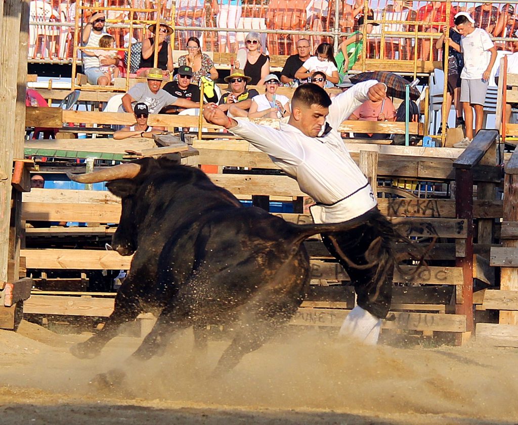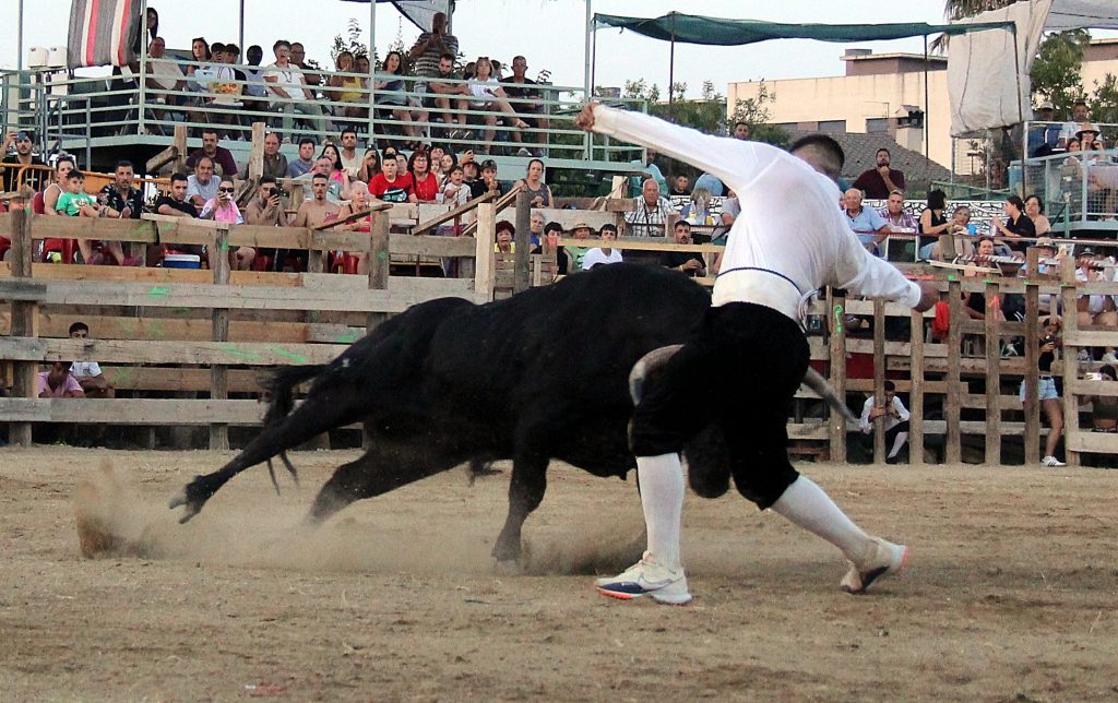 Los especialistas ofrecieron un espectáculo de raza y valor, ejecutando saltos, quiebros y recortes que arrancaron ovaciones continuas del respetable, más de 2.000 personas presentes. No menos protagonistas fueron los toros, con una seria y notable presentación, procedentes de la ganadería catalana de Eliseo Adell.