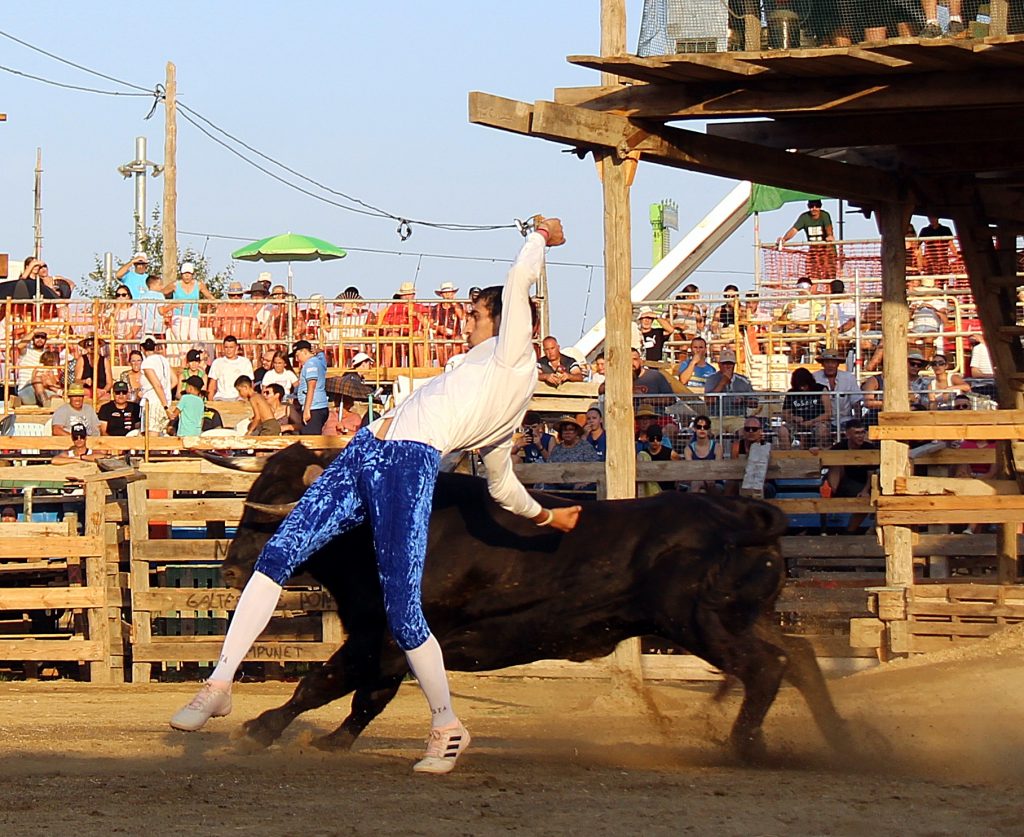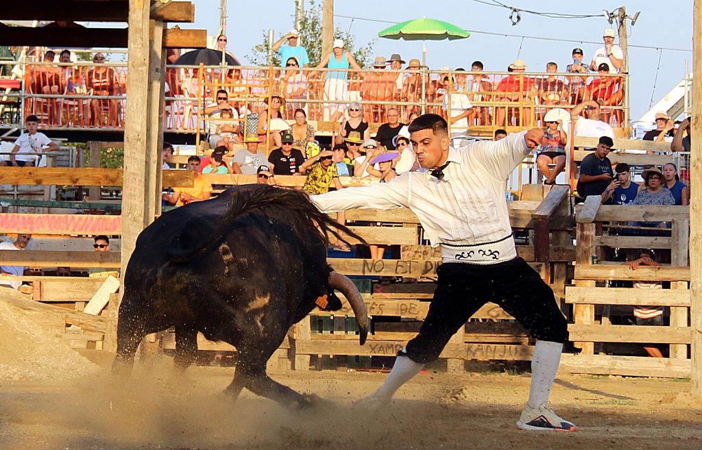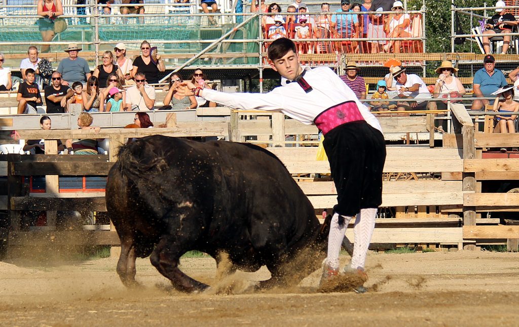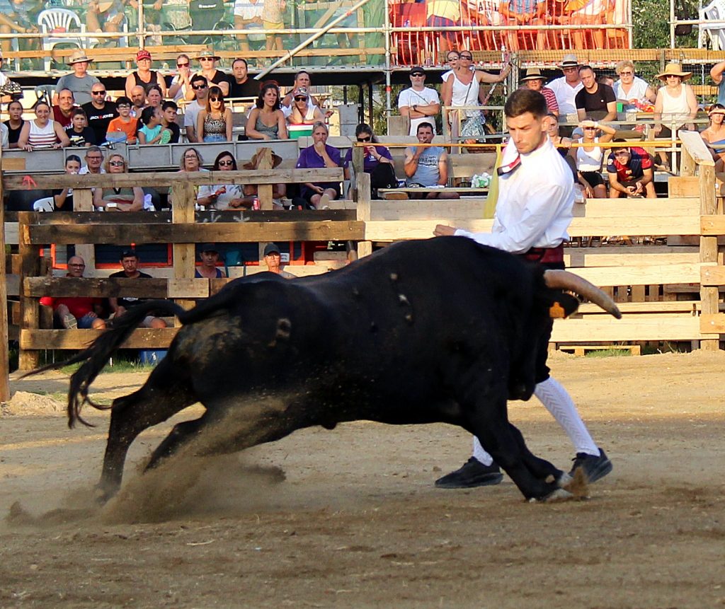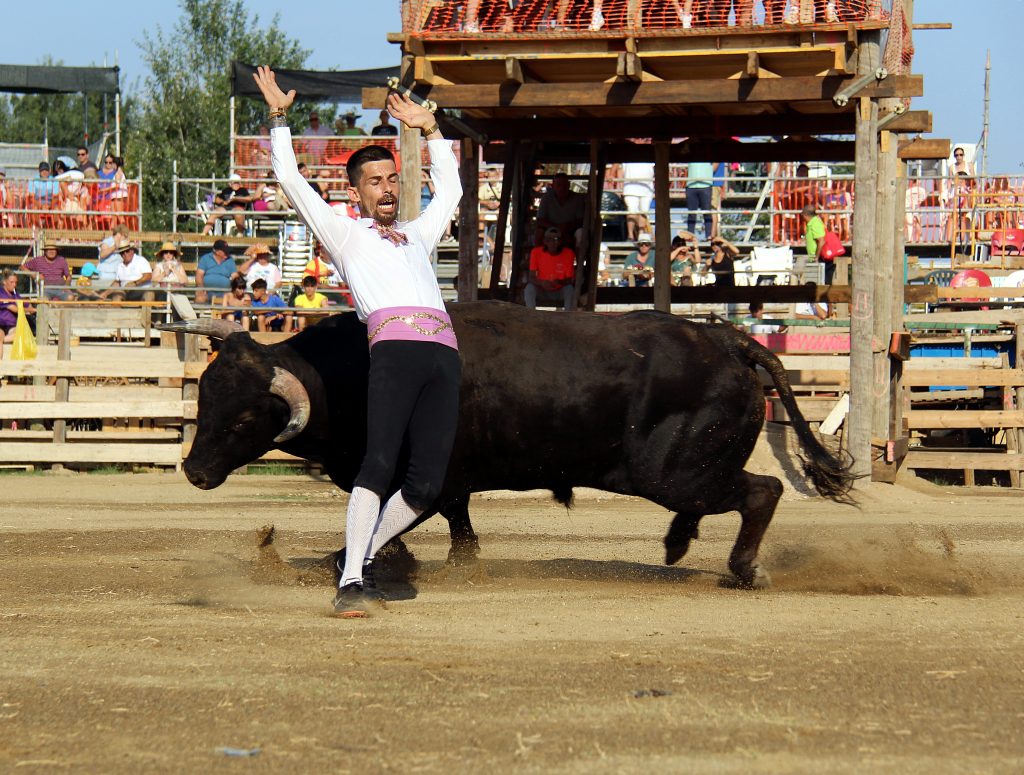 Los especialistas ofrecieron un espectáculo de raza y valor, ejecutando saltos, quiebros y recortes que arrancaron ovaciones continuas del respetable, más de 2.000 personas presentes. No menos protagonistas fueron los toros, con una seria y notable presentación, procedentes de la ganadería catalana de Eliseo Adell.
